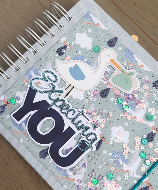 nella copertina ho realizzato una sorta di shaker card col tulle, e tante paillettes sotto che si muovono!